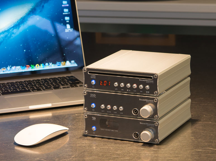 2010年に生産終了した真空管アンプにかわるものとして「良い音をリーズナブルに」はキープコンセプトのまま、ODM事業をとおして養った最新のデジタル技術を形にしたいという思いからうまれたのが、SOUND WARRIORデスクトップシリーズです。さらにここには、真空管アンプの実績とノウハウもリユースして、ハイブリッドの製品もリリースしました。