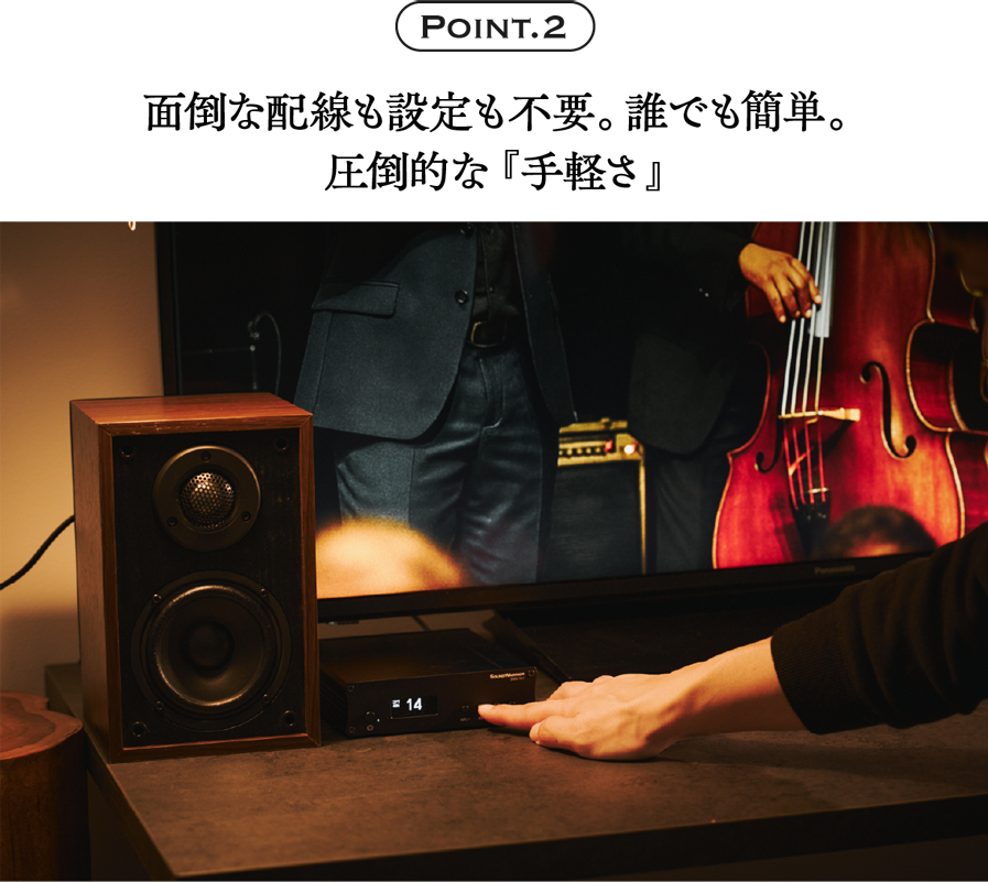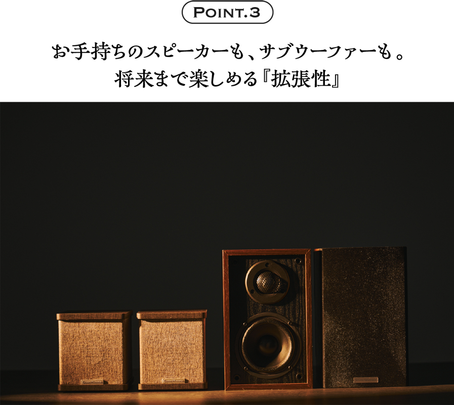 そんな思いをこめて、長年音響機器の開発をしてきたわたしたちなりに、誰もが手軽に良い音をご自宅で体験できる製品をつくりあげました。